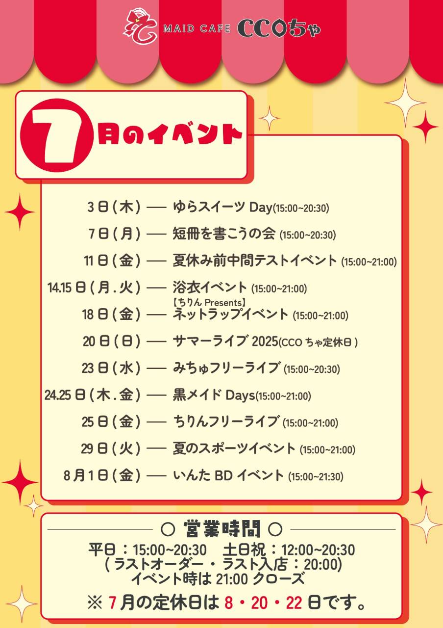 20日(日) サマーライブ2025 (CCOちゃは定休日となります)